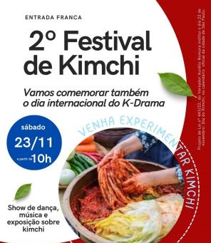 Dia 23 de novembro vai acontecer o 2º Festival do Kimchi e a Comemoração do Dia Internacional do K-Drama, das 10h às 18h, na Praça Coronel Fernando Prestes, no Bom Retiro, no centro de São Paulo. O Dia do Kimchi foi instituído pelo Projeto de Lei n 443/22 de autoria do vereador Aurélio Nomura e 22 de novembro marca a sua data no calendário oficial da cidade de São Paulo.