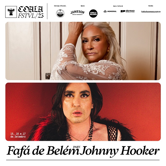 A conexão Pará-Pernambuco, entre Fafá de Belém e Johnny Hooker, leva uma dose carregada de paixão ao Coala Festival, num show em que os artistas se encontram para celebrar a parceria que já deu frutos na trajetória musical dos dois. “Pernambuco e Pará se parecem muito nessa coisa de se jogar, falar de paixão, se rasgar, mandar recado direto. Conheci Johnny pela trilha sonora do filme ‘Tatuagem’, coloquei a música dele no meu disco. Acho que ele é gigante, despudorado, moderno. Então, é uma alegria ele ter aceitado meu convite para o festival. Temos falado muitas madrugadas sobre o repertório e vai ser maravilhoso estar no Coala com ele. Preparem-se!”, avisa Fafá de Belém.