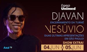 Djavan é sucesso por onde passa e na maior cidade da América Latina não poderia ser diferente. O cantor ganhou data extra no Espaço Unimed, novo nome do Espaço das Américas, no domingo, dia 5 de junho, com formato de mesa e cadeira, que marcará o fim da turnê “Vesúvio” em São Paulo.