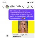 O fã de Joelma, recebeu um vídeo no qual a cantora destaca que, como o Mercado Livre tem a entrega mais rápida do país, ela trouxe uma surpresa e canta um trecho de um de seus sucessos, a música “Sim”.  Adriano ficou surpreso e empolgado com o presente. “Mercado Livre, você que me matar do coração, né? Que lindo! Fiquei mais apaixonado por vocês”, escreveu.