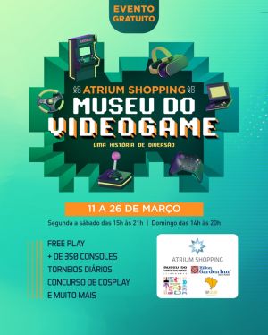 Após o sucesso de público nas edições anteriores (em 2020 e 2022), o Museu do Videogame Itinerante está de volta ao Atrium Shopping. O acervo com aproximadamente 350 consoles retorna ao empreendimento encantando o público de todas as idades. Entre 11 e 26 de março, gamers e admiradores estão convidados a conhecer ou revisitar essa verdadeira experiência imersiva.