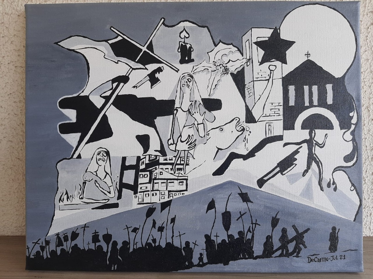 Em seus quadros o cubismo e o expressionismo predominam, mas a necessidade de atingir um diverso público o faz passear em diversos estilos, encarando o desafio da sua inclinação para criar.