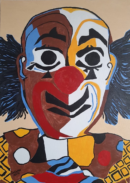 Contemplamos emocionados palhaços e “ clowns “ em alguns temas, influência clara da arte cênica em sua vida.