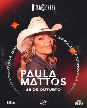 No dia 18 de outubro, a cantora e compositora Paula Mattos fará uma apresentação especial no Villa Country, em São Paulo. O show marca o lançamento de um novo projeto, com a gravação de quatro músicas inéditas e regravações de alguns dos maiores sucessos da artista. O repertório também incluirá canções que se tornaram conhecidas nas vozes de outros artistas, mas que são composições assinadas por Paula Mattos.