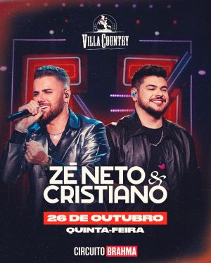 É com alegria e entusiasmo que o  Villa Country anuncia mais uma grande e tão aguardada apresentação: Zé Neto & Cristiano. Esta noite inesquecível ao som das vozes marcantes que conquistaram o coração de milhares de fãs por todo o país acontecerá em São Paulo no dia 26 de outubro de 2023 (quinta-feira).